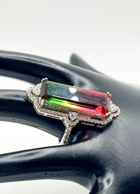 Rainbow Mystic Lab Topaz and CZ Sterling Silver Statement Ring