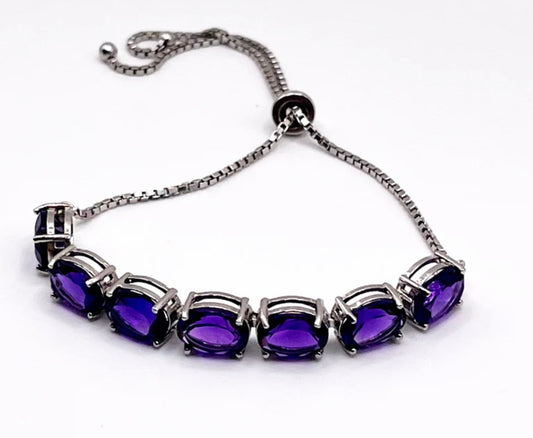 Purple CZ & Sterling Silver Adjustable Bracelet