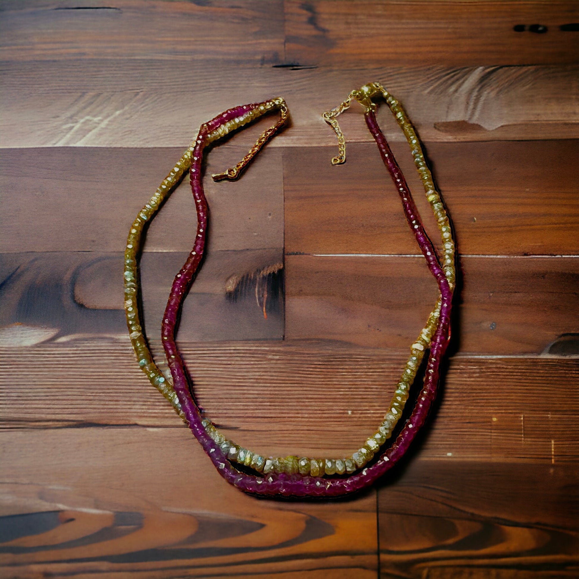 2 detachable or stackable strands of beaded genuine amethyst and agate stones - adjustable length